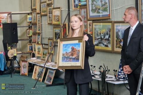 • firma Prelitech sp. z o.o. reprezentowana przez Sebastiana Piwowarczyka 2000 zł („Domy nad rzeką z mostkiem” akryl, „Jelonki” haft);