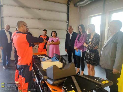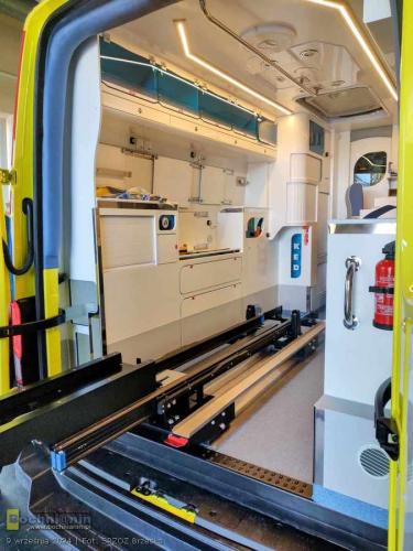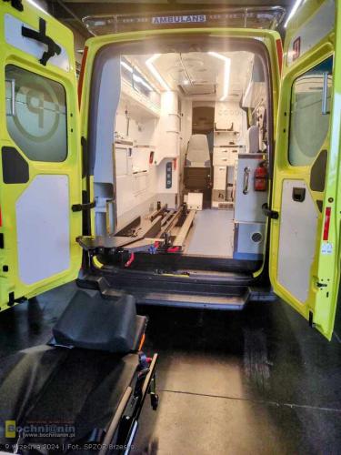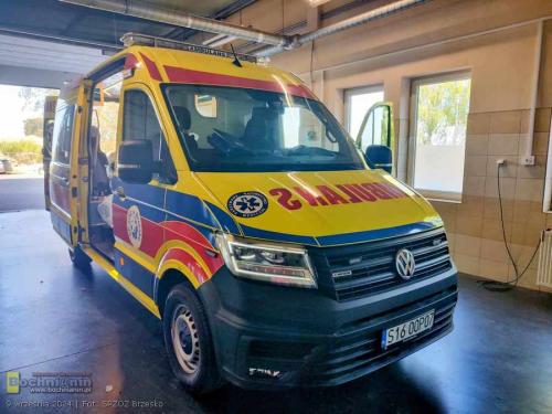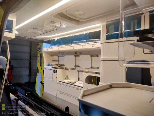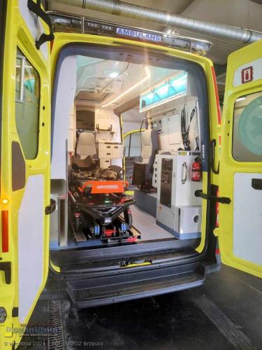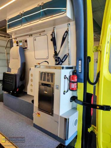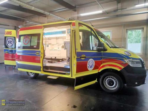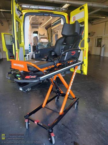 Nowoczesna karetka marki Volkswagen Crafter posiada dodatkowe wyposażanie tj.: videolaryngoskop, urządzenie do przenoszenia pacjenta z systemem trakcyjnym umożliwiającym zsuwanie pacjenta po schodach – krzesło ratownicze (kardiologiczne) schodowe i nosze główne wyposażone w system elektrycznego wspomagania podnoszenia i opuszczania.