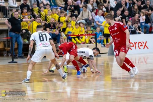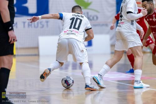 W 39 min. doszło do kuriozalnej sytuacji. Arbiter odgwizdał faul popełniony przez zawodnika Eurobusu, który skutkował mogącym zdecydować o wyniku przedłużonym rzutem karnym dla Bochni. Gdy Adam Wędzony szykował się już do jego wykonania, sędziowie nagle zmienili zdanie i cofnęli decyzję, odwołując karnego (podkreślmy, że póki co w Futsal Ekstraklasie nie ma technologii VAR). Sądząc jednak po zapisie transmisji wideo, ostateczna decyzja była chyba jednak słuszna – choć przyjmując takie założenie, trudno zrozumieć dlaczego stojący 2 metry od akcji sędzia w ogóle odgwizdał faul…