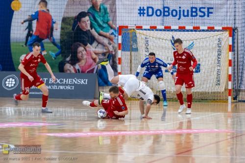 Wszystkie bramki w tym meczu padły w drugiej połowie. Trzeba jednak podkreślić, że to, iż BSF schodził na przerwę bez straty gola, to w ogromnej mierze zasługa Viktora Sääfa, który miał w tej części gry mnóstwo pracy, ale dosłownie zamurował bramkę i nawet gdy rywalom udawało się zgubić defensorów Bochni, to nie byli w stanie pokonać tej ostatniej instancji.