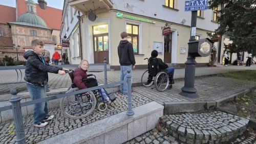 Przez dwie godziny młodzież poruszała się po mieście na wózkach inwalidzkich, by lepiej zrozumieć, z jakimi barierami na co dzień spotykają się osoby z niepełnosprawnościami. Do uczniów dołączyli także seniorzy oraz mama z dziecięcym wózkiem — wspólnie sprawdzali dostępność miejskiej przestrzeni.
