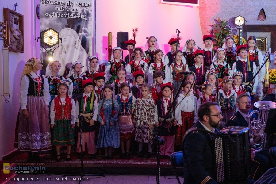 W sobotę, 15 listopada, w kościele pw. Matki Bożej Bolesnej w Gierczycach odbył się wyjątkowy koncert „Pod Patrią”, przygotowany z okazji Święta Niepodległości. Wydarzenie przyciągnęło licznych mieszkańców, którzy przyszli wspólnie uczcić narodowe święto muzyką, śpiewem i tańcem.