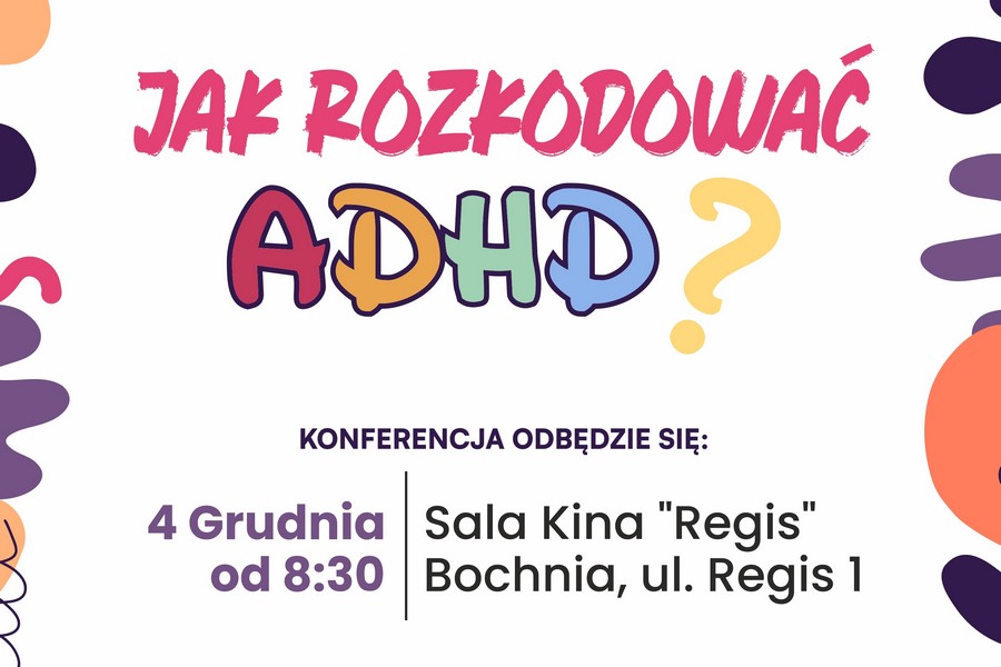 Poradnia Psychologiczno-Pedagogiczna w Bochni wraz ze Starostwem Powiatowym w Bochni zaprasza do wzięcia udziału w konferencji pn. „Jak rozkodować ADHD?”.