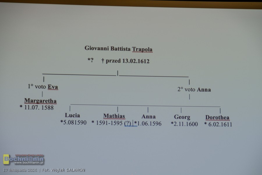 Podczas prelekcji zaprezentowano ustalenia dokonane we współpracy z naukowcami z Czech. Kwerendy w archiwach potwierdziły, że Maciej Trapola, znany także jako Mathias Trap, urodził się i wychował w Brnie na Morawach. Jego ojciec, Giovanni Battista Trapola, przybył tam z Włoch i był cenionym budowniczym wielu lokalnych obiektów. To właśnie u niego młody Trapola odbywał pierwsze praktyki, a dalszą edukację kontynuował u najlepszych mistrzów.