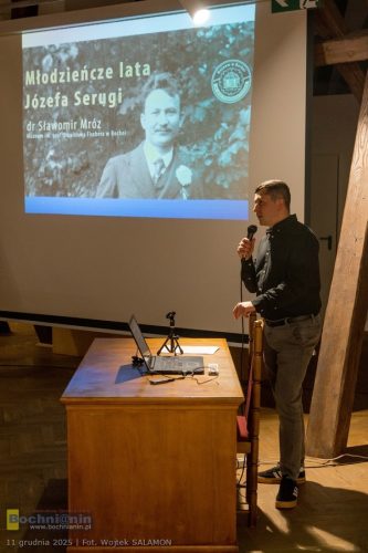 „Młodzieńcze lata Józefa Serugi” były tematem ostatniego w tym roku Czwartkowego Spotkania Muzealnego, które odbyło się w Muzeum im. Stanisława Fischera w Bochni. W czwartek, 11 grudnia, Sławomir Mróz przedstawił opowieść o młodości Józefa Serugi (1886-1940) – pochodzącego z Łapczycy historyka, archiwisty, oficera Wojska Polskiego, bibliotekarza i muzealnika, zamordowanego w Katyniu.
