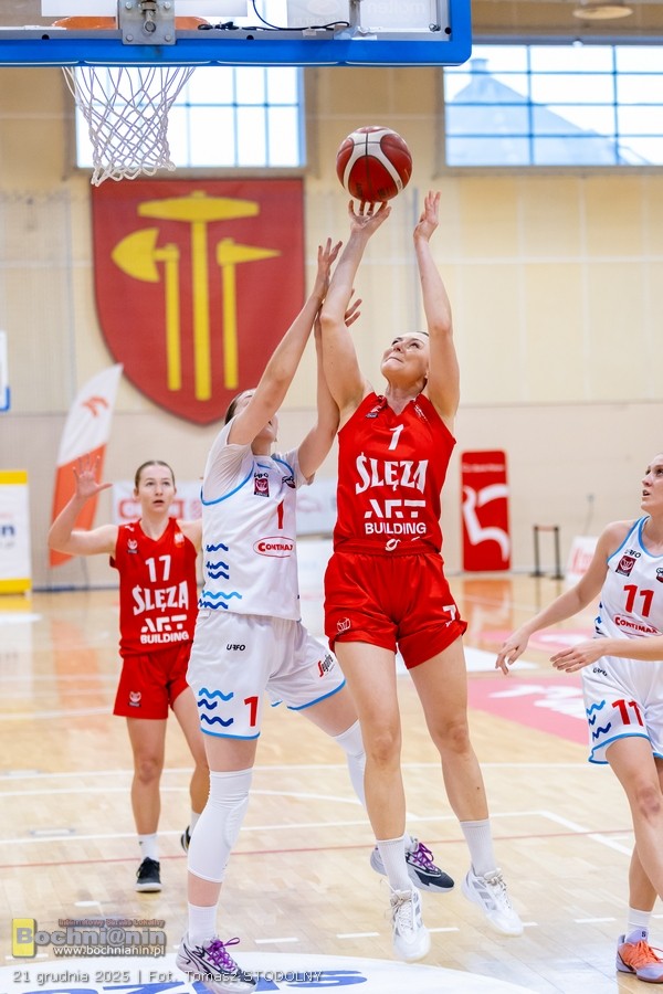 W ofensywie Bochni wyróżniały się Gołas (17 pkt) i Zuchora (15 pkt, 3/4 za trzy), a bardzo skuteczna pod koszem była Cabała (7/9 z gry). Z ławki solidny występ zanotowała Zając, kończąc mecz z double-double. Po stronie Ślęzy kluczową postacią była Łata (19 pkt, 9 zb., 9/10 z linii rzutów wolnych), wspierana przez Alasińską i Wołowiec.