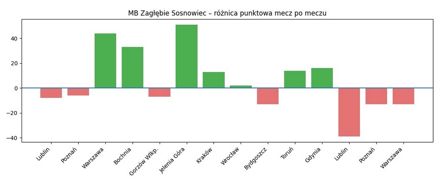 Tamto spotkanie wspominamy bardzo źle. Mecz wcześniej Bochnia straciła kontuzjowaną rozgrywającą Darię Dubniuk więc do Sosnowca jechała z rozsypaną koncepcją gry i rozbita mentalnie. Niby byliśmy w euforii po rozpoczęciu sezonu z bilansem 3-0, ale jednocześnie wiedzieliśmy, że strata DD7 to ogromna wyrwa. Na dodatek pauzowała wtedy także kontuzjowana Marta Marcinkowska. W tych okolicznościach i przy twardych warunkach jakie postawiły gospodynie, efekt był druzgocący – wysoka przegrana, różnicą aż 33 punktów.