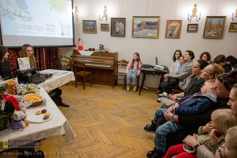 W piątek w Domu Bochniaków odbyła się promocja książki dla dzieci „Językowe figle-migle, wiersze o słowach, co płatają figle” autorstwa Sary Więcek. Spotkanie, zorganizowane przez Stowarzyszenie Bochniaków i Miłośników Ziemi Bocheńskiej oraz Wydawnictwo Regis, zgromadziło najmłodszych czytelników i ich opiekunów.
