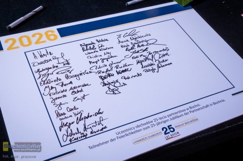 Kulminacyjnym punktem jubileuszu było podpisanie Deklaracji o kontynuacji i rozwoju współpracy, w której oba samorządy potwierdziły partnerstwo oraz wyznaczyły nowe kierunki działań, odpowiadające współczesnym wyzwaniom. Uroczystość potwierdziła, że współpraca Powiatu Bocheńskiego i Powiatu Saarlouis to żywa relacja oparta na przyjaźni, wzajemnym szacunku i odpowiedzialności za przyszłe pokolenia.