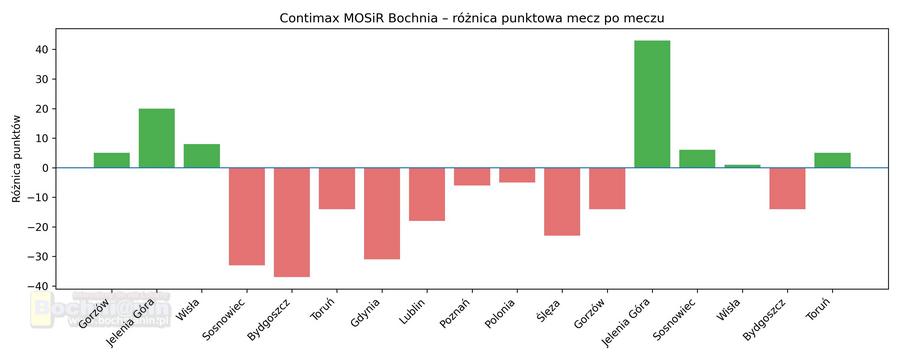Bochnianki mają obecnie 24 punkty i identyczny bilans jak trzy inne zespoły z miejsc 7–9. To sprawia, że każdy mecz – nawet z rywalem wyżej notowanym – może okazać się kluczowy w kontekście play-offów. Problemem zespołu z Bochni pozostaje gra na wyjazdach (2–5), ale ofensywa (1392 zdobyte punkty) pokazuje, że drużyna potrafi nawiązać walkę z każdym.