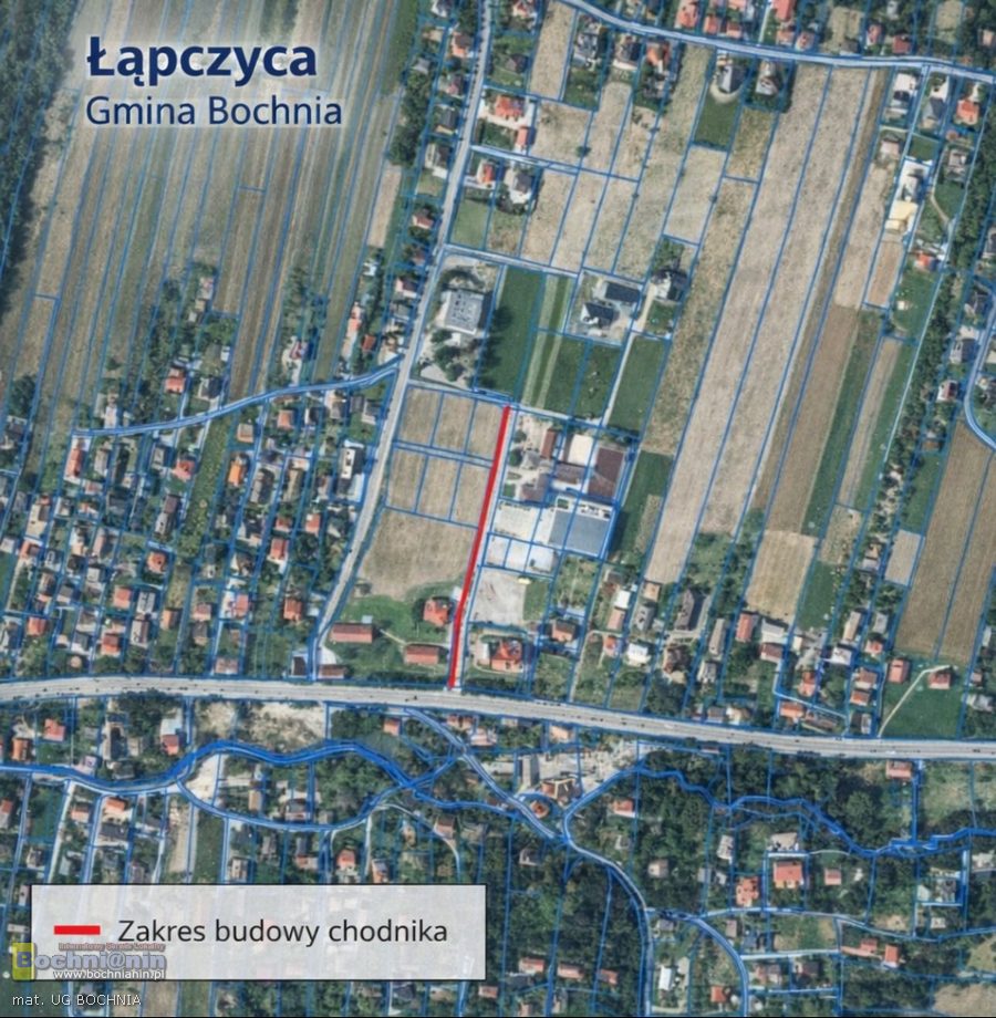 Gmina Bochnia planuje budowę nowego chodnika w Łapczycy. Powstanie on przy drodze gminnej na odcinku około 200 metrów – od skrzyżowania z sygnalizacją świetlną w górę, w kierunku, kościoła, szkoły i ośrodka zdrowia.