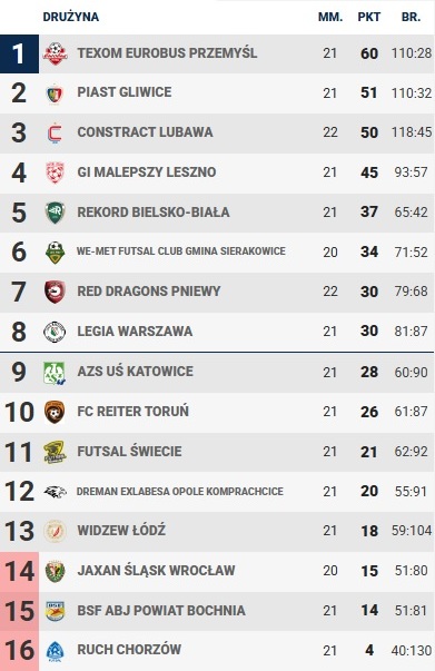 W sobotni wieczór BSF ABJ Powiat Bochnia stanie przed kolejnym kluczowym wyzwaniem w walce o utrzymanie w FOGO Futsal Ekstraklasie. W 22. kolejce bochnianie zmierzą się na wyjeździe z Widzewem Łódź — rywalem bezpośrednio zaangażowanym w walkę o ligowy byt.