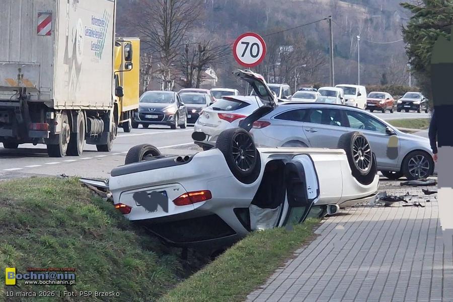 Do zdarzenia doszło w czwartek (5 marca) około godz. 13:30 na odcinku drogi między Brzeskiem a Nowym Sączem, na wysokości kilometra 37+100. Jak wynika z informacji przekazanych przez służby, samochód osobowy wypadł z drogi i dachował.