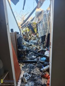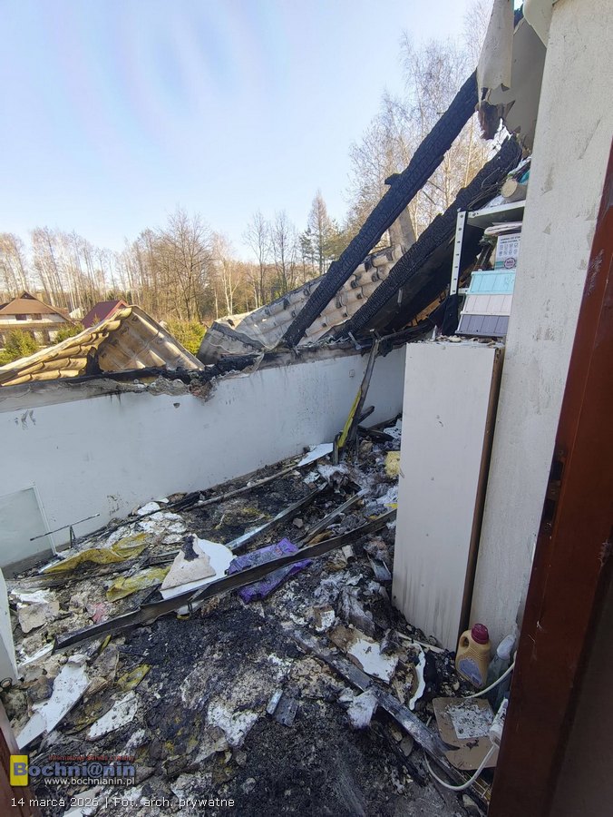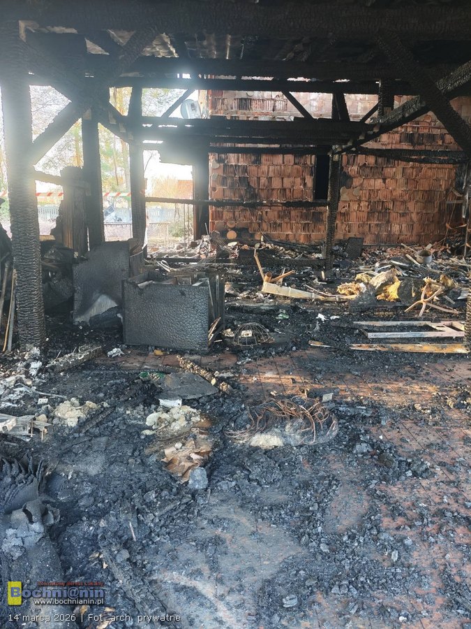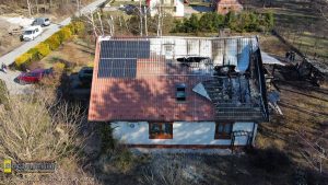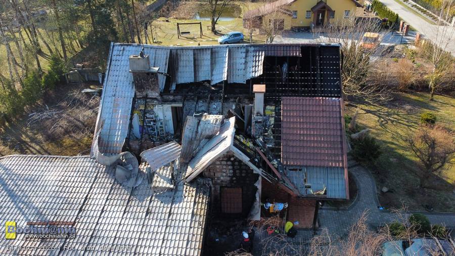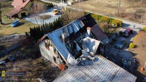 Ogień objął cały dach oraz użytkowe poddasze budynku. Spłonęła również wiata, w której znajdowały się narzędzia i sprzęt potrzebny do codziennego życia i pracy. Dodatkowo podczas akcji gaśniczej zalane zostały pomieszczenia na parterze domu. W efekcie rodzina straciła znaczną część dorobku swojego życia, a budynek wymaga teraz gruntownego remontu.