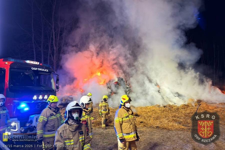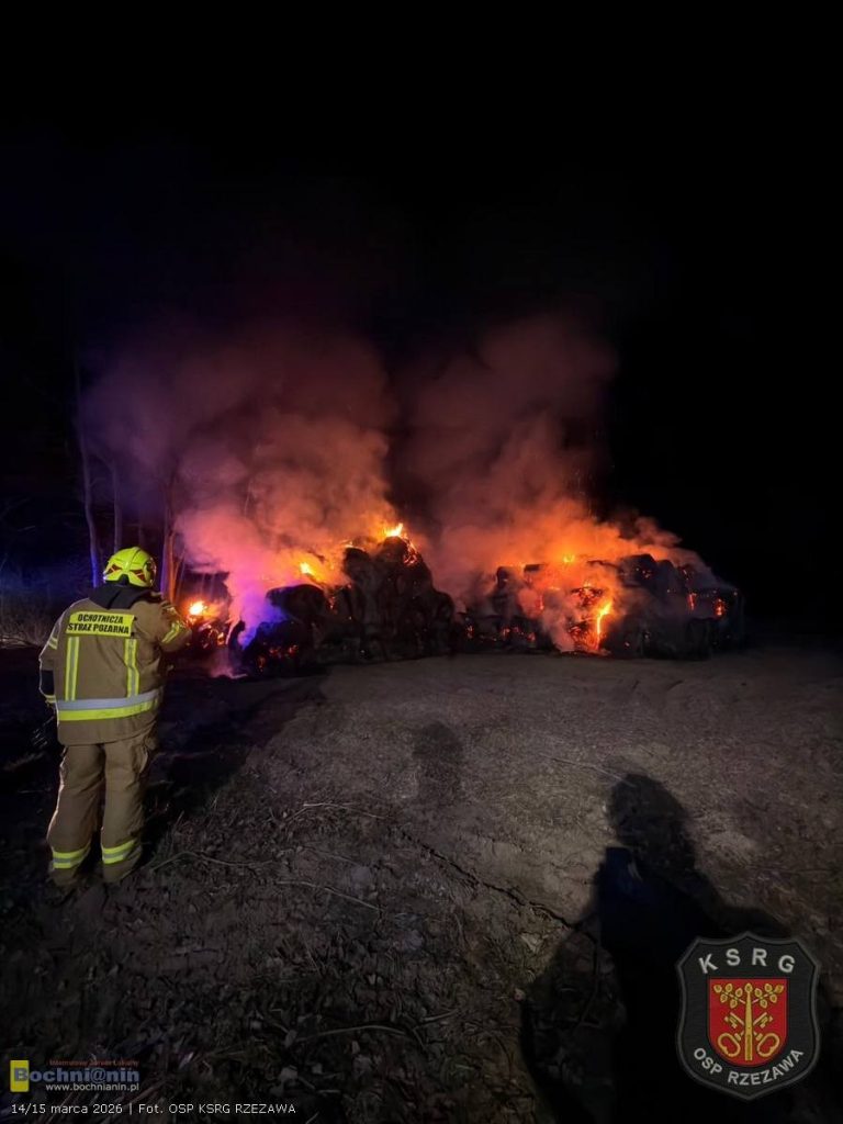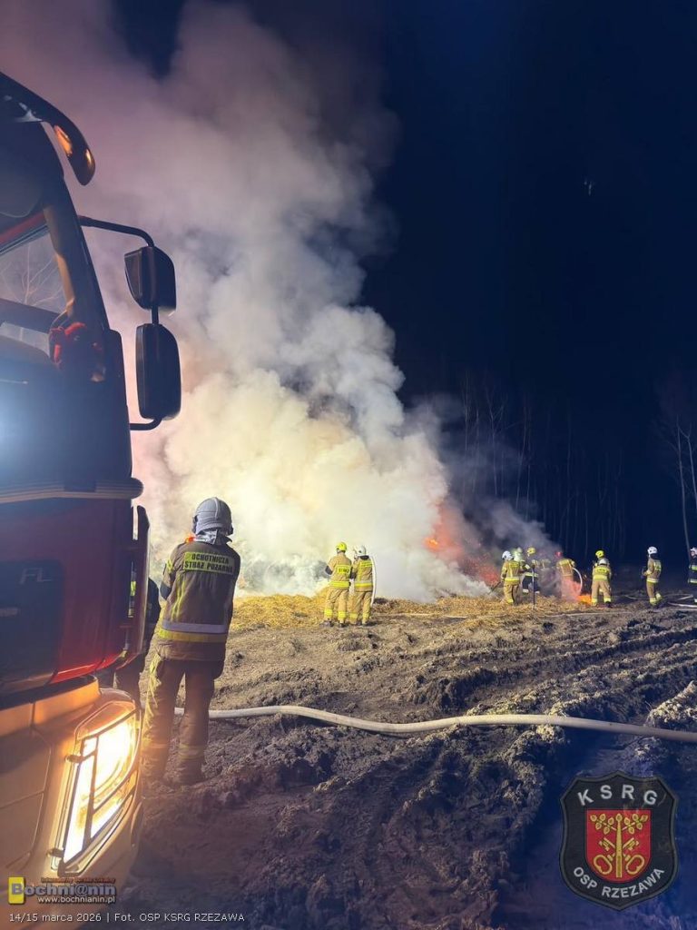 Zgłoszenie o pożarze wpłynęło do dyżurnego Komendy Powiatowej Państwowej Straży Pożarnej w Bochni w sobotę późnym wieczorem, tuż przed północą. Ogień bardzo szybko objął dużą ilość słomy. Wysokie płomienie oraz łuna nad miejscem zdarzenia były widoczne z dużej odległości.