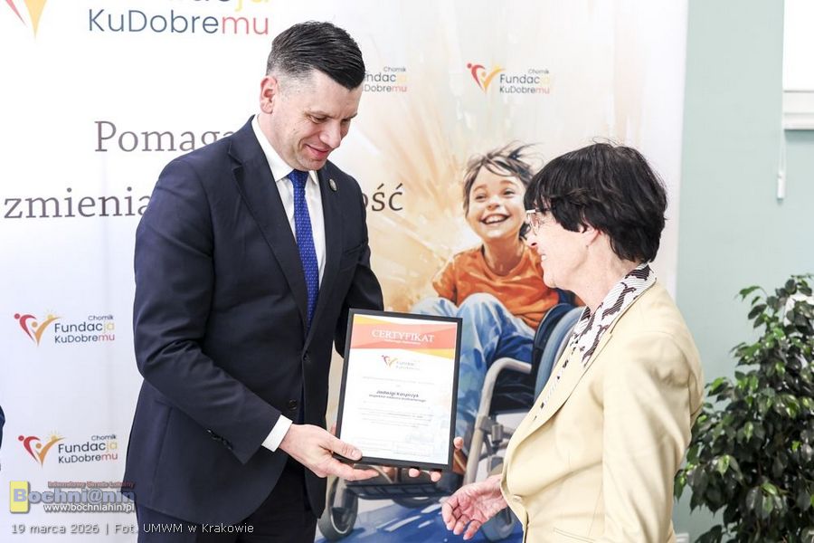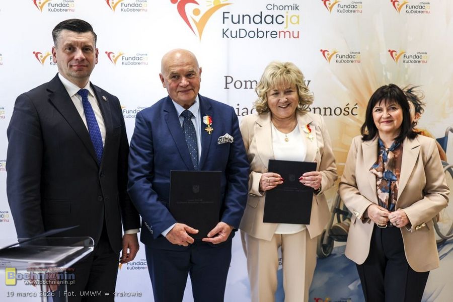Podczas uroczystości wręczono także Złote Odznaki Honorowe Województwa Małopolskiego – Krzyże Małopolski. Otrzymali je Marek Świeży, właściciel firmy Chomik, oraz Janina Świeży, prezes Fundacji „Chomik – Ku Dobremu”.