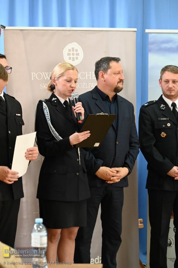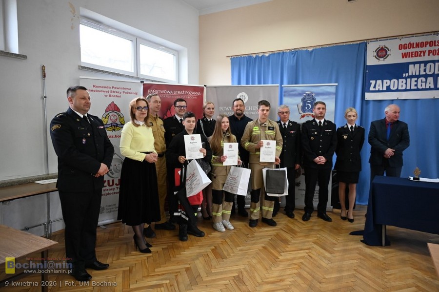 Dyplomy i nagrody wręczyli: burmistrz Bochni Magdalena Łacna, wicestarosta bocheński Ryszard Drożdżak, sekretarz Powiatu Bocheńskiego Anna Wojakiewicz, zastępca komendanta powiatowego PSP w Bochni st. kpt. Bartłomiej Łącki oraz prezes ZOM ZOSP RP w Bochni dh Tadeusz Cichoń.