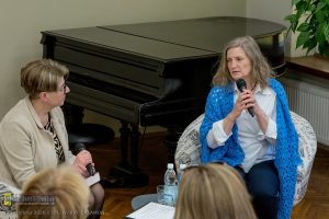 Podczas spotkania autorka opowiadała o kulisach powstawania książki oraz swojej pracy badawczej związanej z tematyką położnictwa i historią kobiet. Rozmowę poprowadziła dyrektor biblioteki Dorota Rzepka.