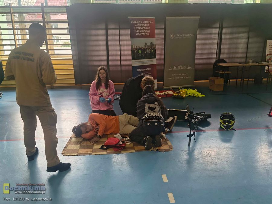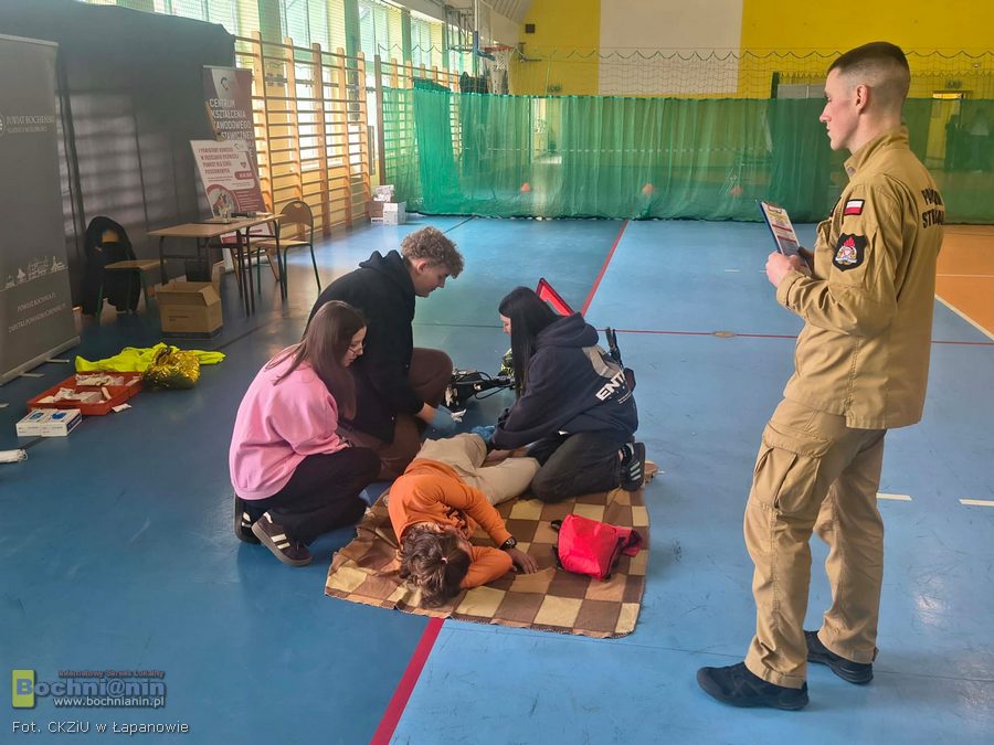 Pierwsze minuty decydują o życiu – właśnie tę zasadę w praktyce sprawdzali uczniowie podczas I Powiatowego Konkursu w Udzielaniu Pierwszej Pomocy, zorganizowanego w ramach Dnia Otwartego Centrum Kształcenia Zawodowego i Ustawicznego w Łapanowie.