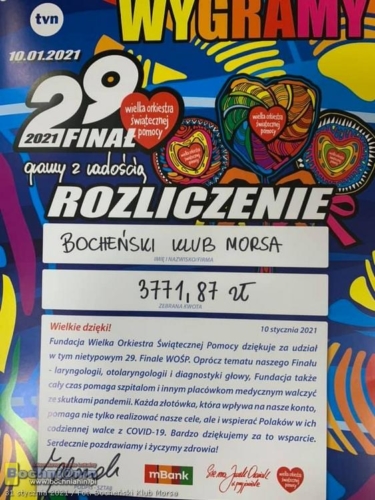 Członkowie Bocheńskiego Klubu Morsa ponownie włączyli się w Finał Wielkiej Orkiestry Świątecznej Pomocy. Podczas niedzielnego wydarzenia w Chodenicach nad Rabą do skarbonki Fundacji udało się zebrać aż 3771 złotych.