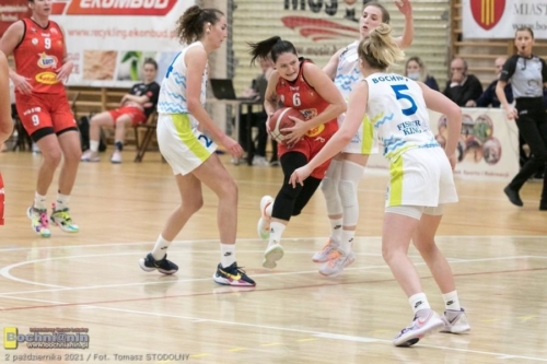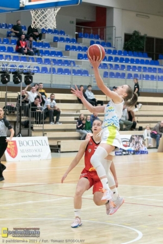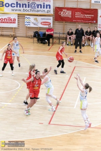 Bochnianki rozpoczęły to spotkanie świetnie i po 1. kwarcie prowadziły 19:13. Potem jednak doświadczony zespół z Łodzi, którego filarem jest mająca za sobą występy w reprezentacji Polski Ewelina Gala (w tym meczu 23 pkt, 10 zbórek), zaczął przejmować kontrolę nad wydarzeniami na boisku. Druga i trzecia kwarta wyraźnie należały do Widzewa, gospodynie dopiero w czwartej znów zaczęły nawiązywać równorzędną walkę. Ostatecznie jednak musiały uznać wyższość przyjezdnych.