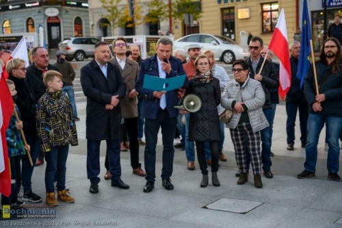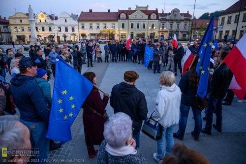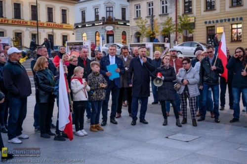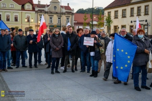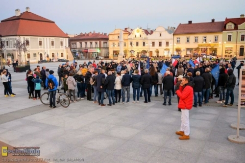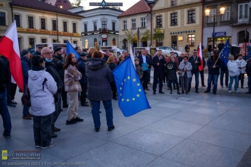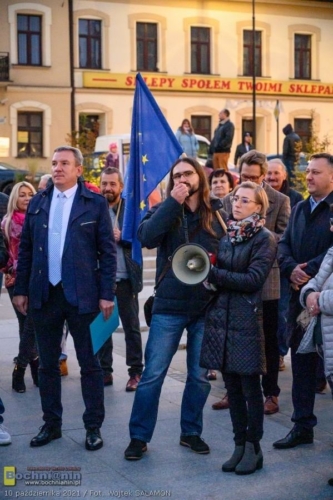 – Bochnia, Warszawa, Gdańsk, Szczecin, Białystok, Tarnów, Kraków… Setki innych miast w Polsce to dziś miejsca, w których spotykają się Polacy, by zaprotestować i pokazać nasze przywiązanie do wartości europejskich, takich jak wolność, demokracja, niezależność sądów, niezawisłość sędziów – mówił podczas spotkania na rynku w Bochni Krzysztof Nowak, radny wojewódzki, szef Platformy Obywatelskiej w powiecie bocheńskim. Przypomniał, że Polska będąca członkiem UE od 2004 roku przeszła od tego czasu niezwykłą przemianę dzięki środkom europejskim. – Masa inwestycji w Bochni i powiecie bocheńskim nie powstałaby, gdyby nie nasze uczestnictwo w UE. Dziękując uczestnikom za przybycie podkreślił: – Nasza przyszłość i przyszłość naszych dzieci i wnuków jest warta naszego zaangażowania.
