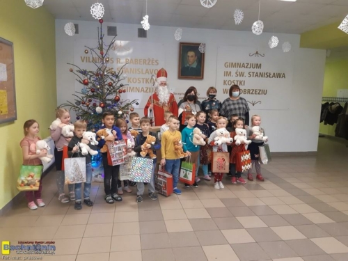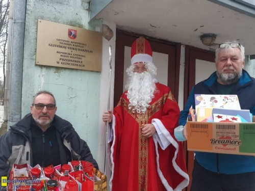 Podczas wizyty św. Mikołaj spotkał się m.in. z dziećmi członków wspólnoty lokalnej Glinciszki – Podbrzezie, dziecięcym zespołem tanecznym w Glinciszkach, nie zapomniał o maluchach z przedszkoli w Glinciszkach i Anowilu, wizytował Gimnazjum im. św. Stanisława Kostki w Podbrzeziu, a także Hospicjum im. bł. ks. Michała Sopoćki w Wilnie.