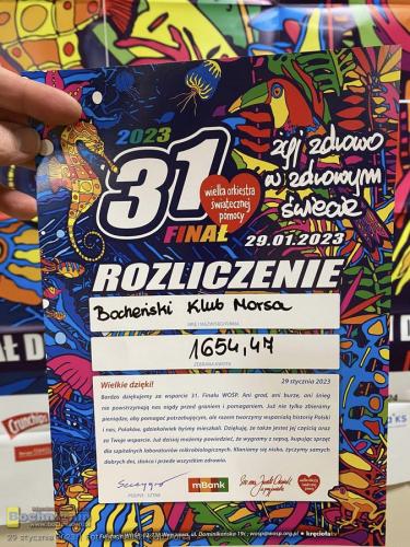 Bocheński Klub Morsa po raz kolejny spotkał się w dniu finału Wielkiej Orkiestry Świątecznej Pomocy, by podobnie jak w poprzednich latach zanurzyć się w nurcie Raby w ramach akcji „Pomaganie przez Morsowanie”. Nad rzeką na uczestników oprócz kąpieli czekało także ognisko, kiełbaski oraz ciepłe napoje. Puszka z datkami została przekazana do sztabu „Bochnia”.