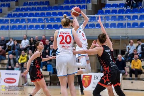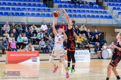 Bochnianki wygrały dość pewnie, oddając prowadzenie jedynie na chwilę – na przełomie pierwszej i drugiej kwarty. Nie był to jednak perfekcyjny mecz w ich wykonaniu – na szczęście potrafiły zmusić przeciwniczki do popełnienia większej liczby błędów (Bochnia zanotowała 19 strat – Swarzędz aż 27).