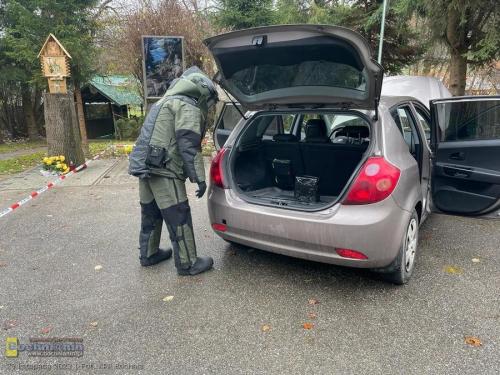 Sprawcę udaje się zatrzymać, a ten przekazuje informację, że w porzuconym przez niego pojeździe znajduje się ładunek wybuchowy. W związku z tym na miejsce kierowani są policyjni pirotechnicy, którzy znajdują ładunek w samochodzie, a następnie zabezpieczają miejsce do czasu przyjazdu odpowiednich służb.