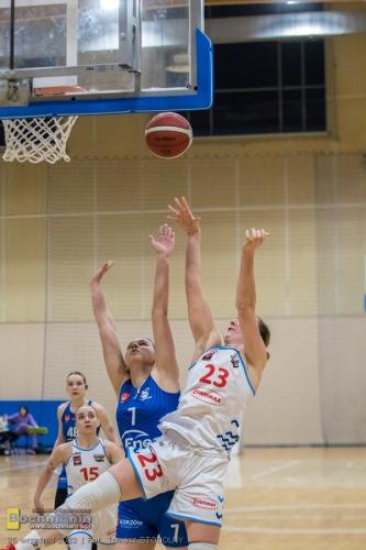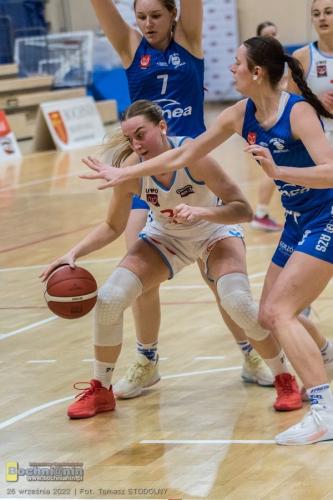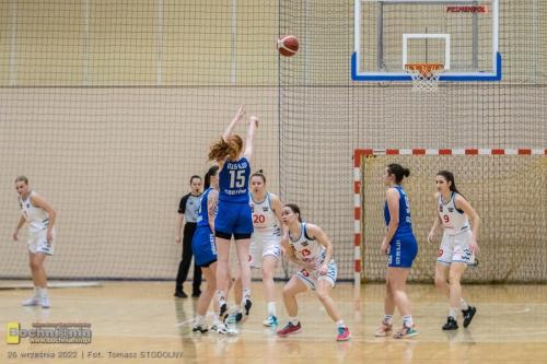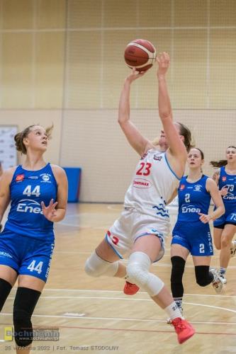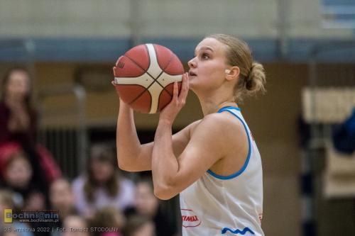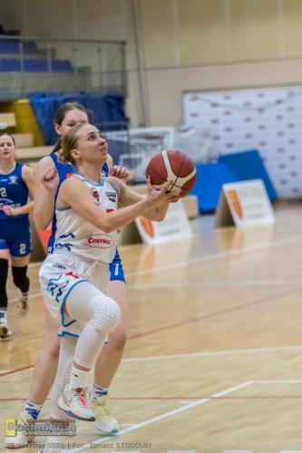 Przewaga wypracowana przez Contimax MOSiR już na początku meczu pozwoliła potem na spędzenie większej liczby minut na boisku zawodniczkom, które zwykle otrzymują ich znacznie mniej. Najlepiej tę szansę wykorzystała wychowanka klubu Nikola Więcek (na zdjęciu poniżej), która tego wieczoru rzuciła najwięcej punktów w drużynie (16) i to przy 70% skuteczności rzutów z gry, zapisała też na koncie 2 przechwyty.